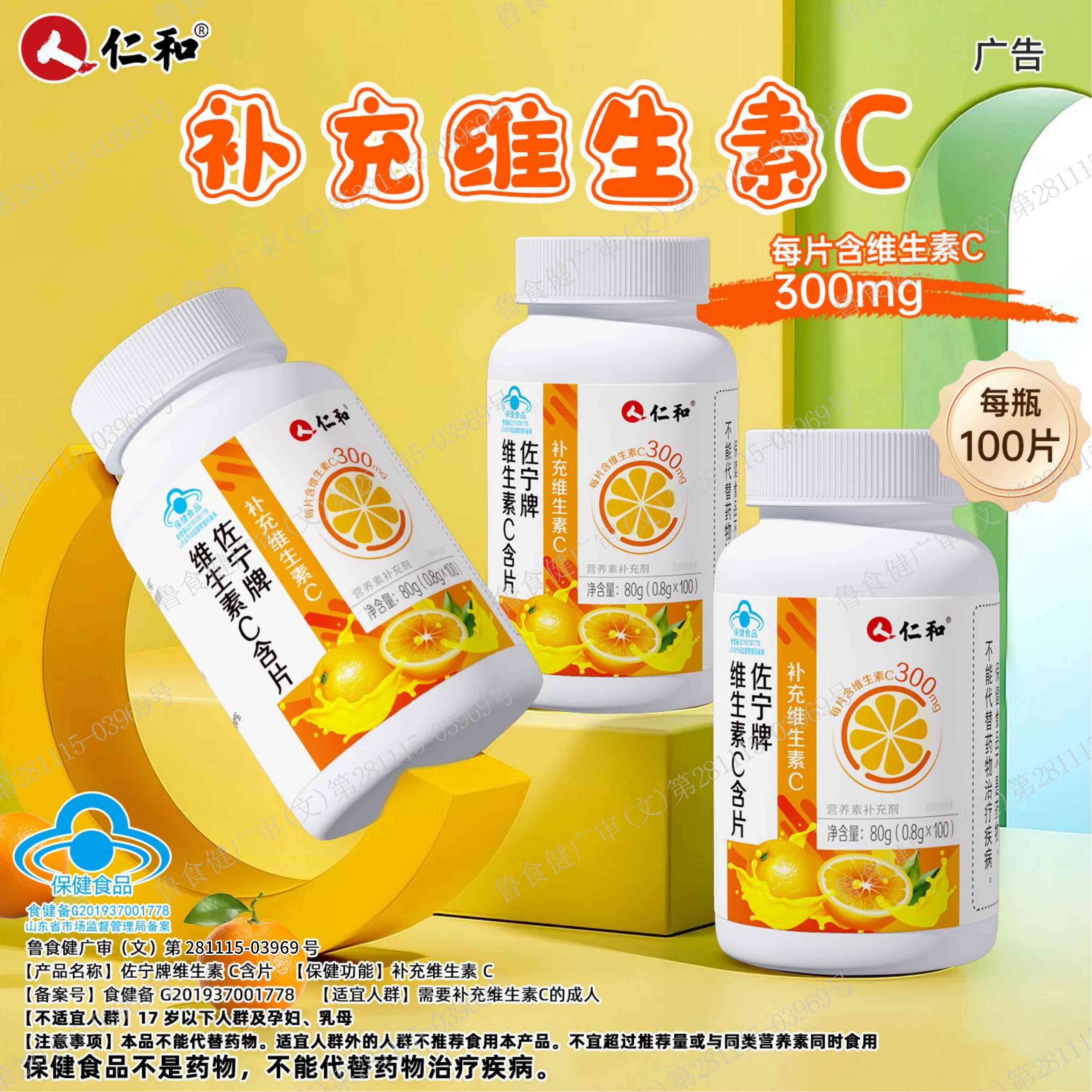 仁和维生素c咀嚼片成人儿童免疫力官方旗舰店100片正品增强vc维c