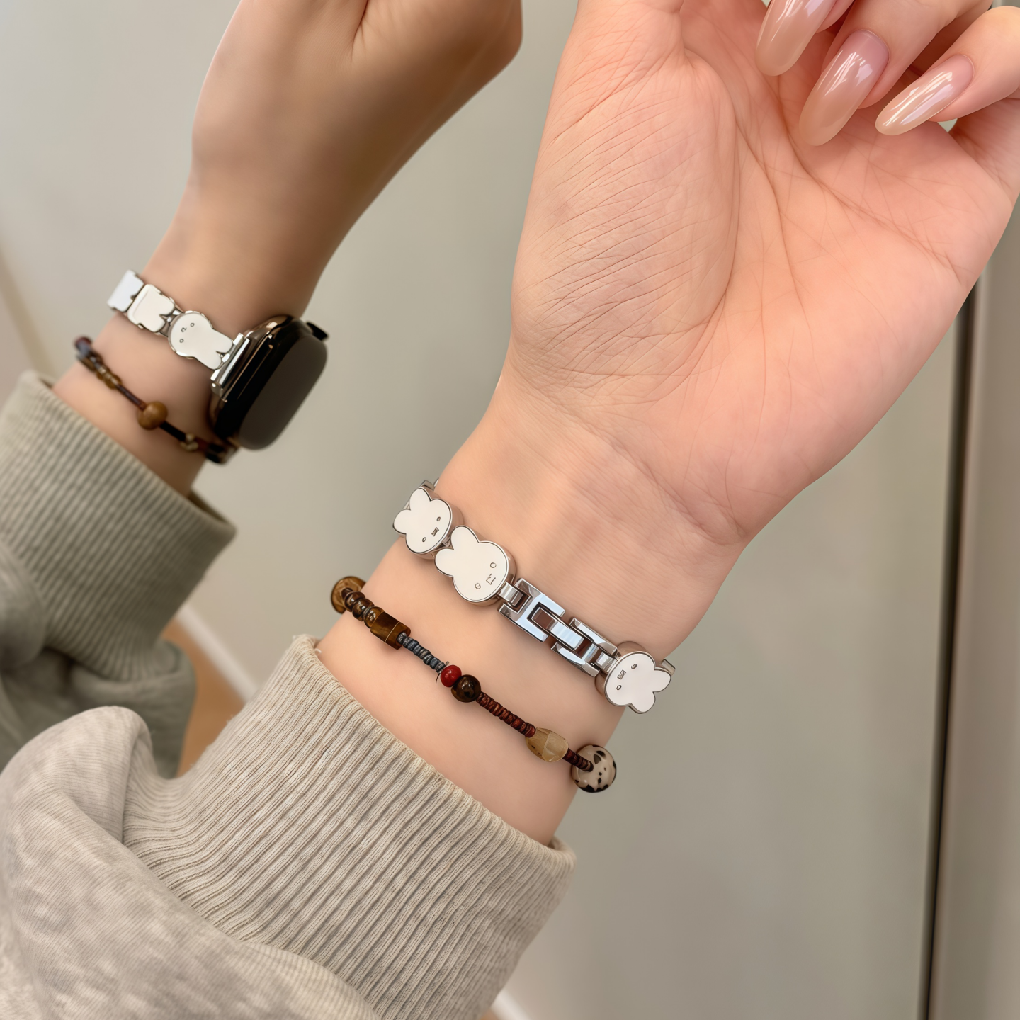 可爱米菲兔金属手链适用苹果手表11代applewatchS10iwatch9腕带女 - 泡芙派Puffpie