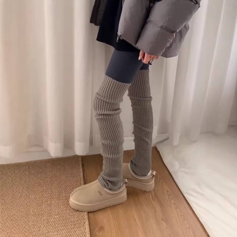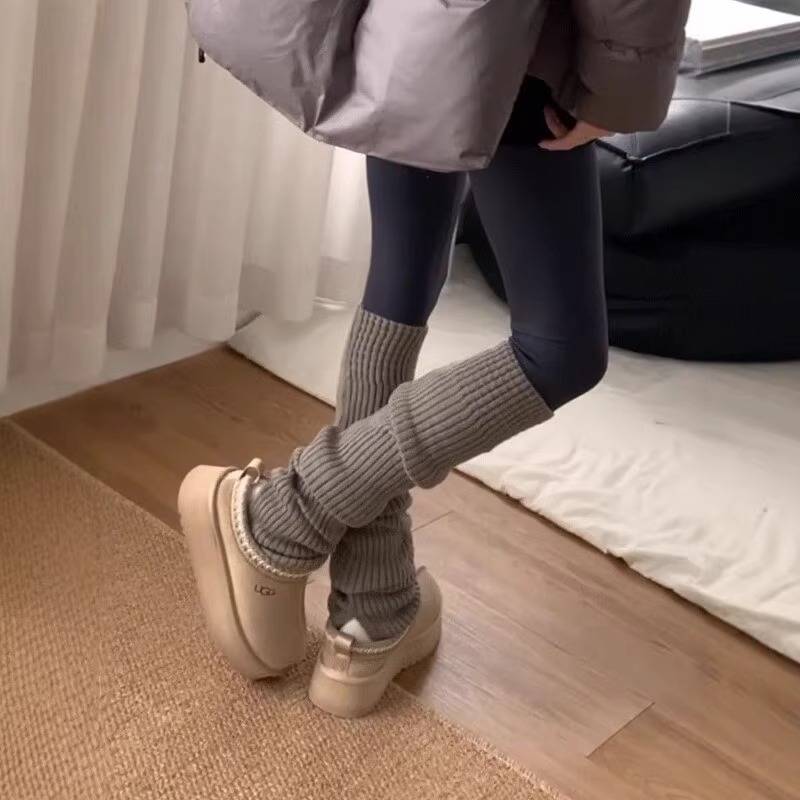 配雪地靴粉色堆堆袜秋冬保暖加厚小腿袜针织袜套白色袜子腿套女 - 璇玑商贸企业店
