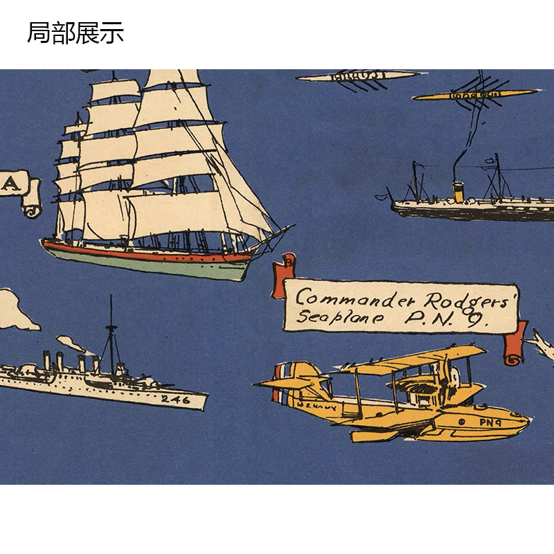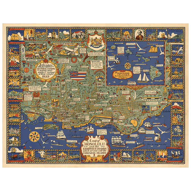 夏威夷火奴鲁鲁群岛插画艺术地图 别墅酒店宾馆复古装饰壁挂画芯 - 别致画廊