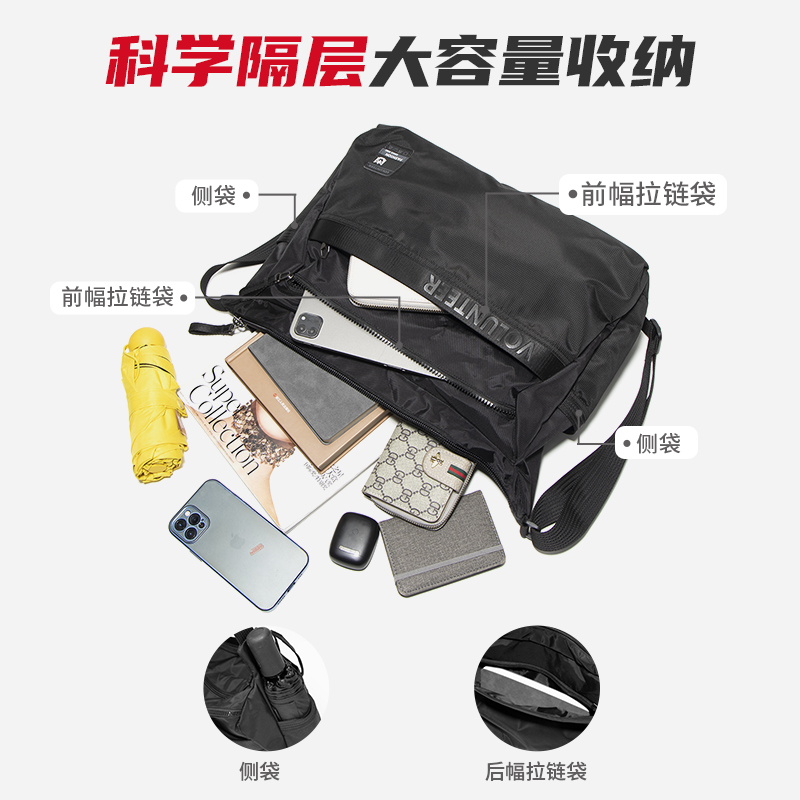 休闲男士单肩包大容量帆布斜挎包牛津布男包运动包包户外轻便背包 - 斯帕曼箱包旗舰店