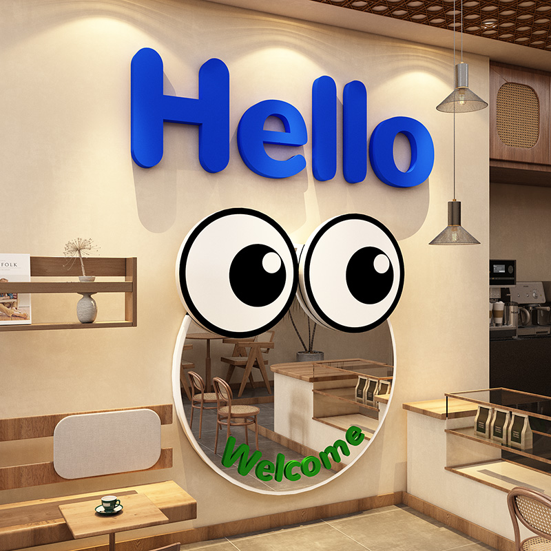 奶茶店墙面hello装饰网红打卡拍照镜子氛围布置蛋糕咖啡厅馆场景