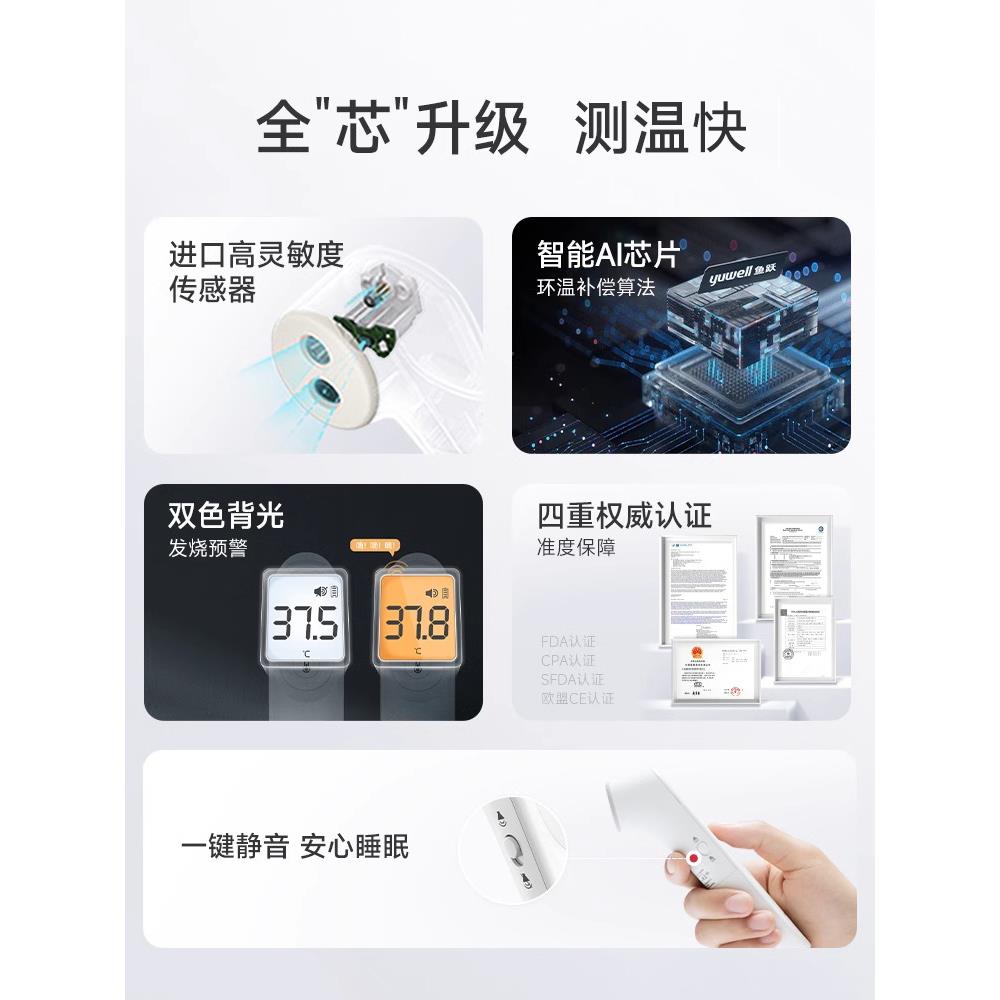 鱼跃电子体温计YT-1家用医用级红外双探头婴儿成人温度计体温抢配