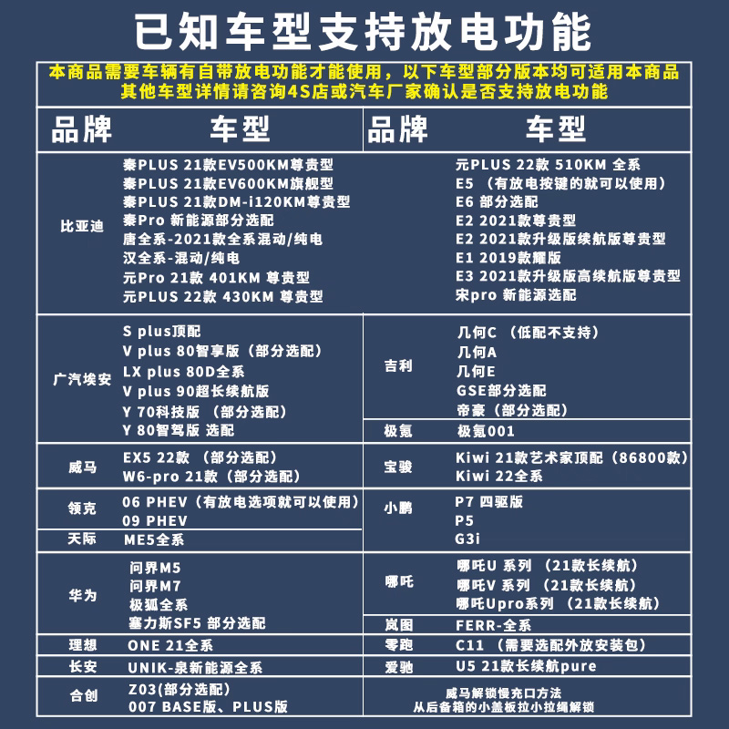 您的位置:他他商城  >   >  国标通用放电枪新能源电动汽车外放电比亚迪埃安深蓝理想取电器