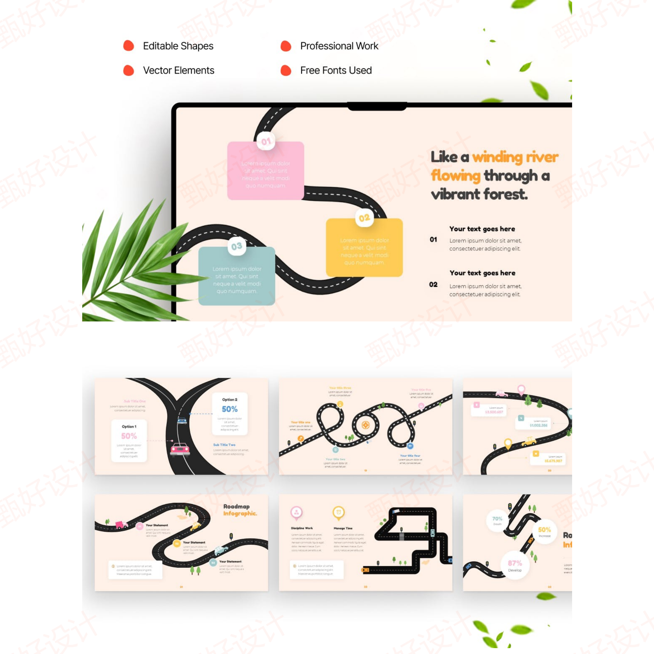 ppt模板公路时间线信息图商业推广工作总结项目投资品牌营销482 - 甄好设计网络工作室