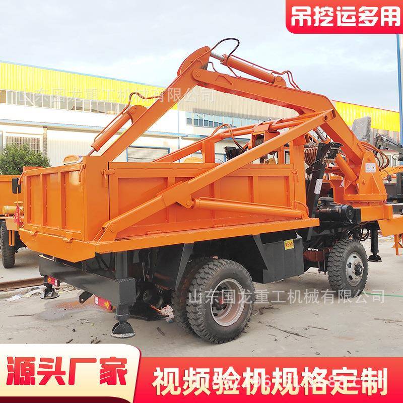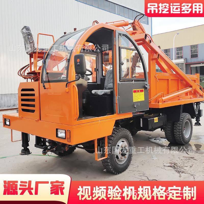 白事下葬用龙门吊挖一体机厂家轮式四驱农用吊装棺材一体车