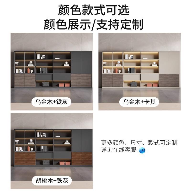 文件柜木质办公室书柜老板背景柜资料柜储物柜简约现代玻璃门靠墙