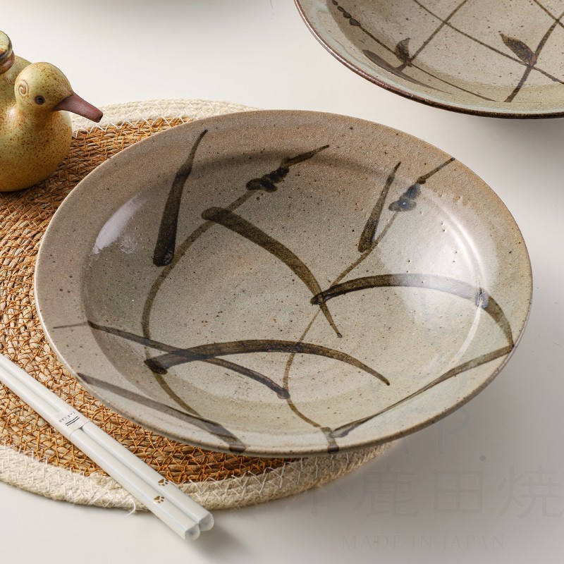 小鹿田烧日本进口水草唐津圆盘新款家用餐盘深盘鱼盘饺子菜盘餐具 - 小鹿田烧旗舰店