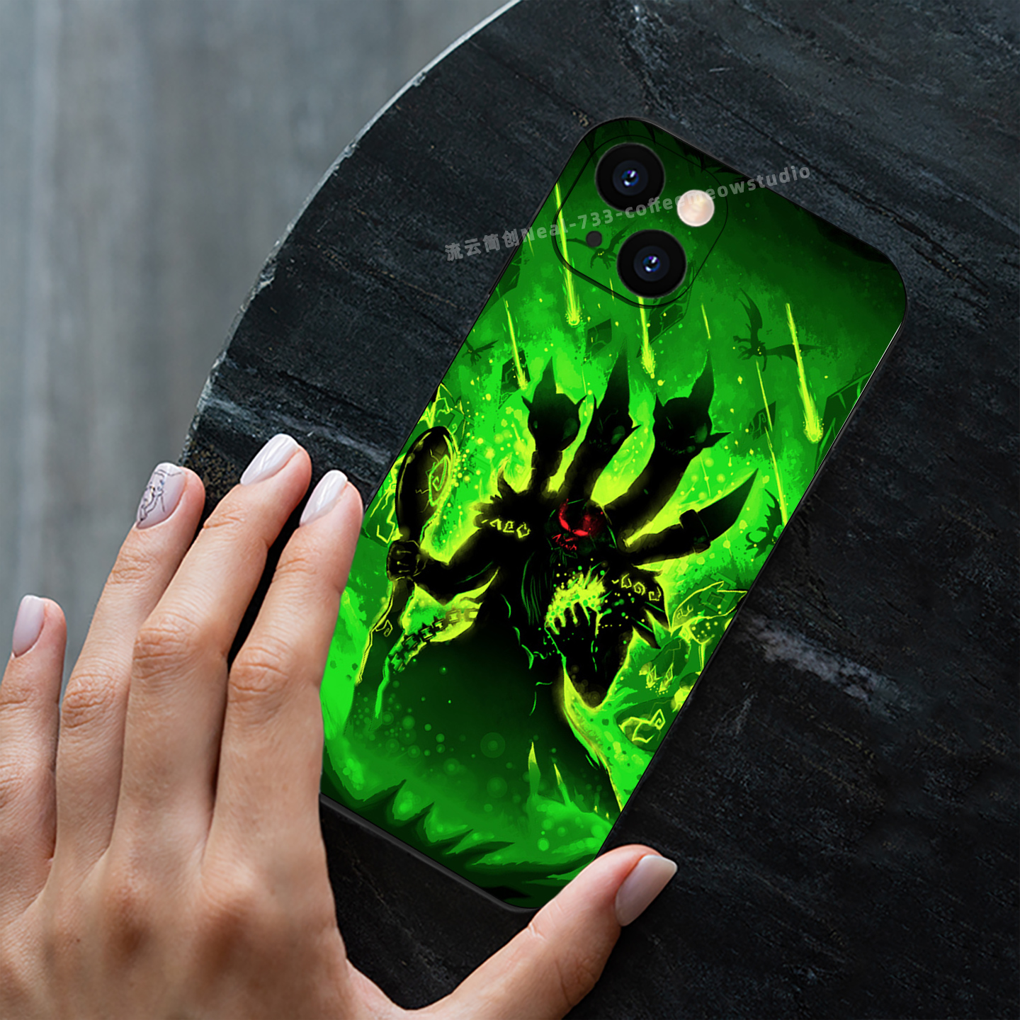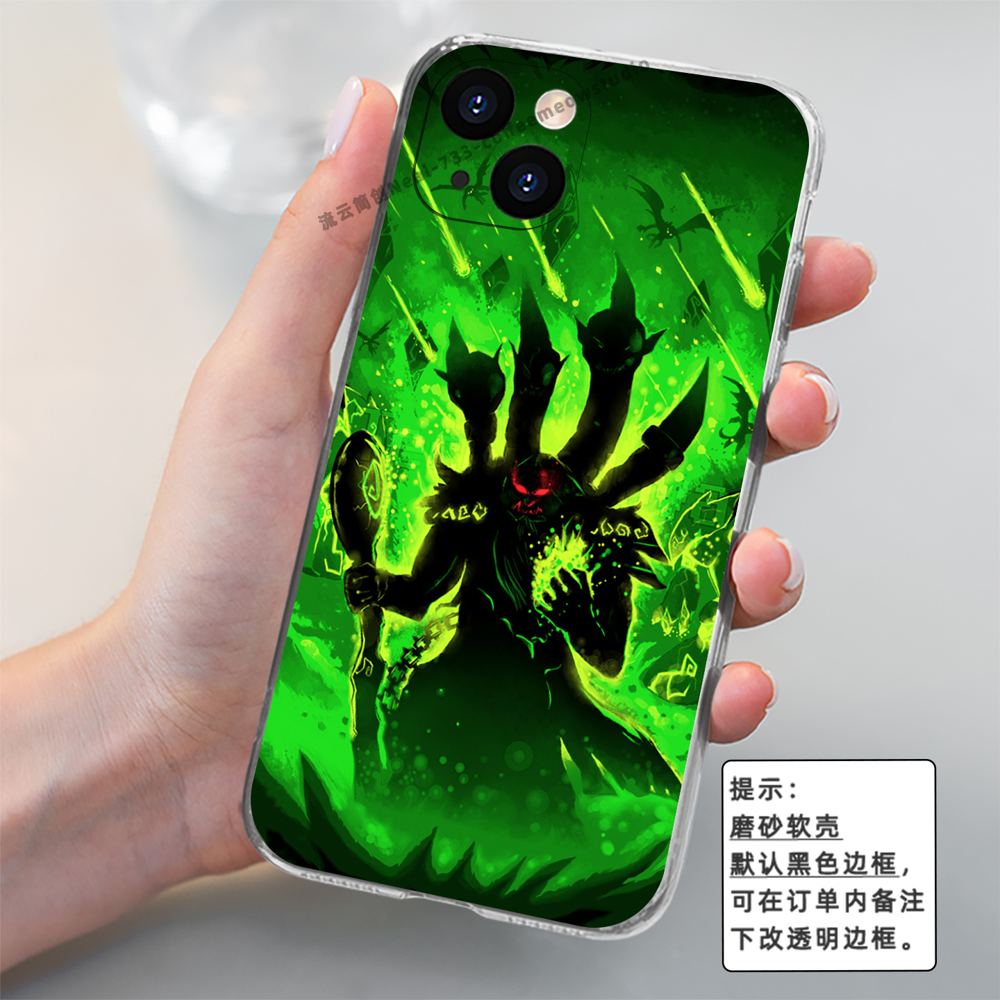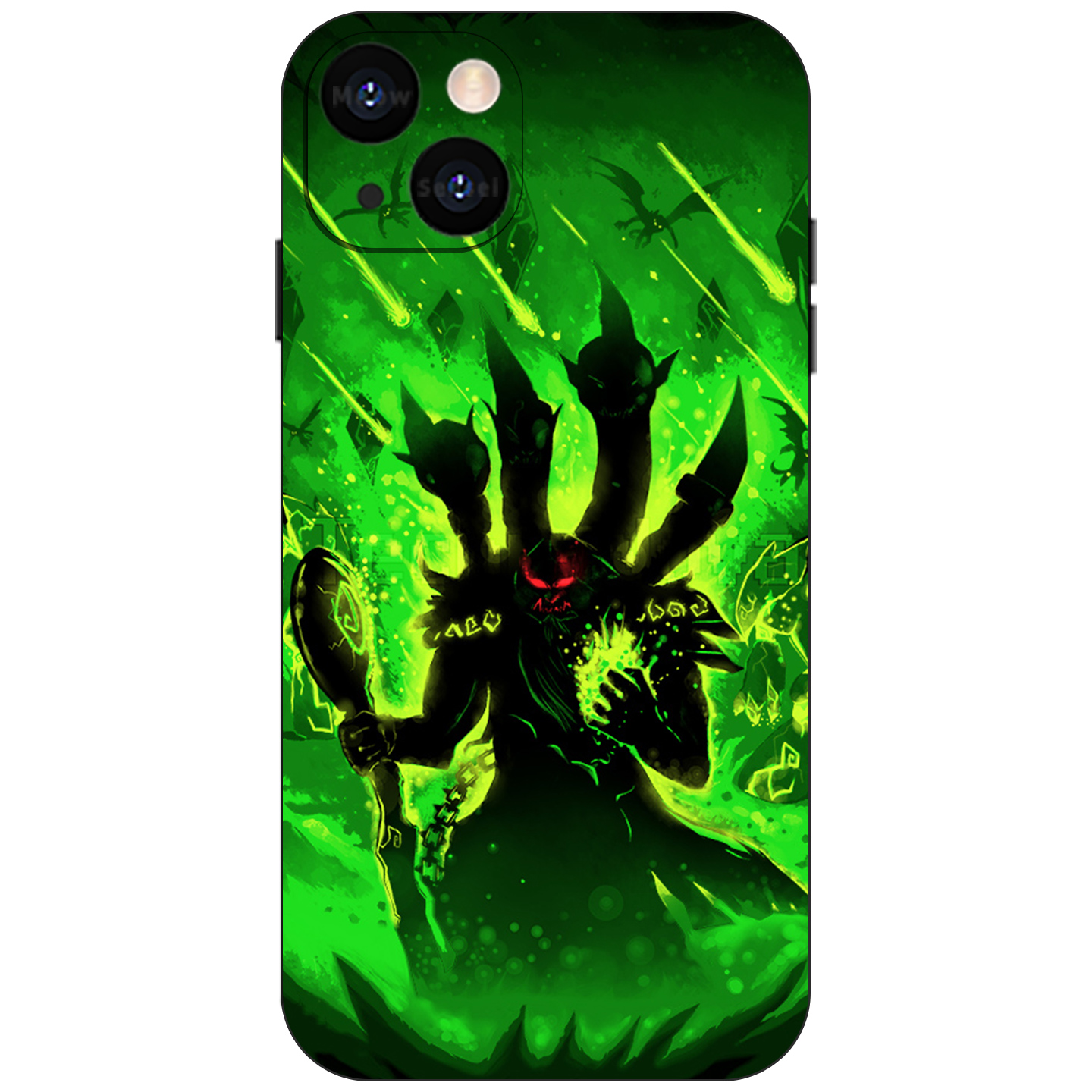 魔兽世界WOW古尔丹插画手机壳适用于苹果14/13全包12/11液态硅胶iPhone15ProMax光面钢化玻璃定制安卓保护壳 - Meow Sensei