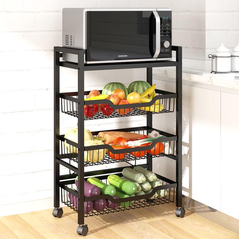 PK7J不锈钢厨房菜篮置物架落地式多层推车放水果蔬菜锅收纳筐微波 - d[s428344552]