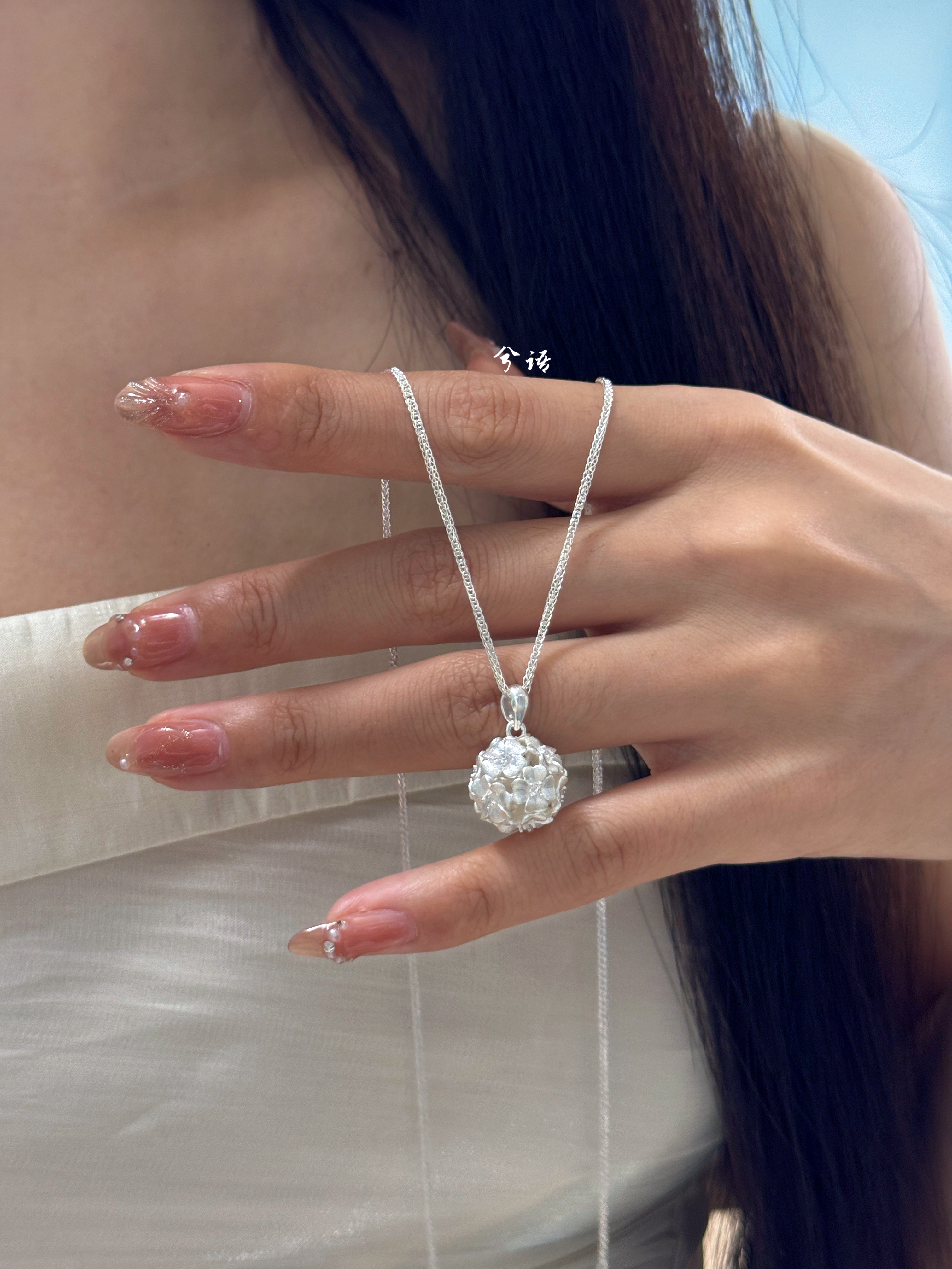兮语「绣球花」足银999.9银项链女时尚民族风纯银新中式国风礼物 - 兮语银局