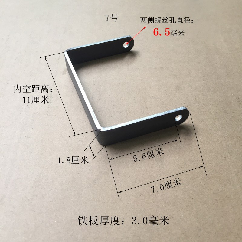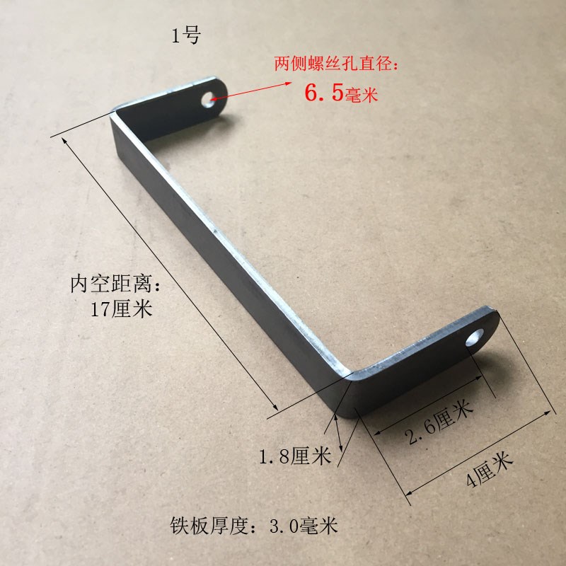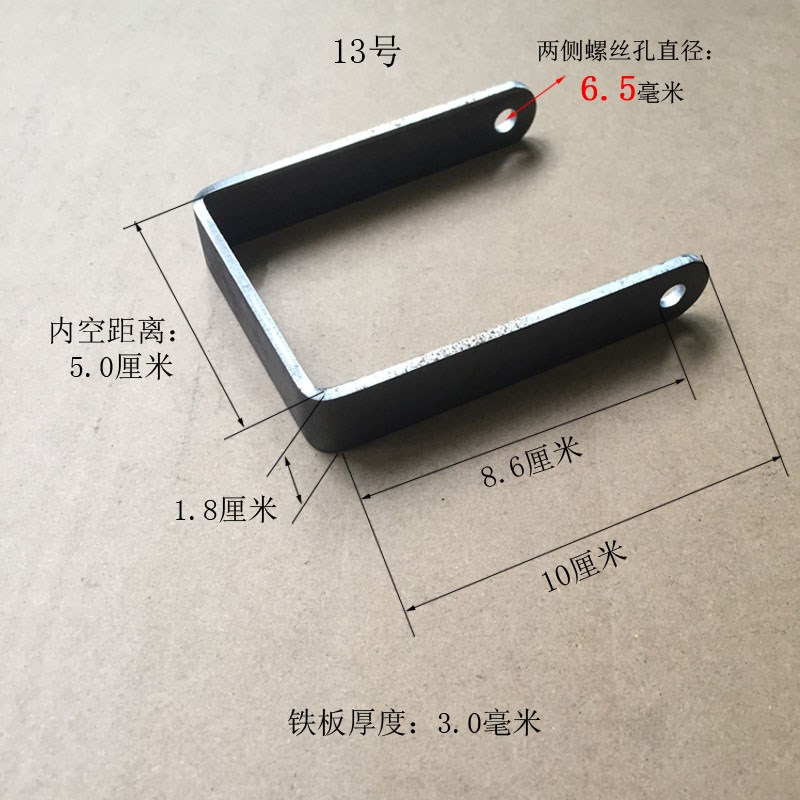 您的位置:他他商城  >  居家  >  U型孔6mm折弯铁件吊杆卡扣紧固件长腿冲压件定制铁板宽度Z1.8厘米
