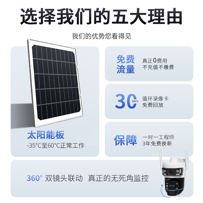 太阳能监控器360度无死角手机远程无需网络家用室外夜视4G摄像头 - 看护家旗舰店