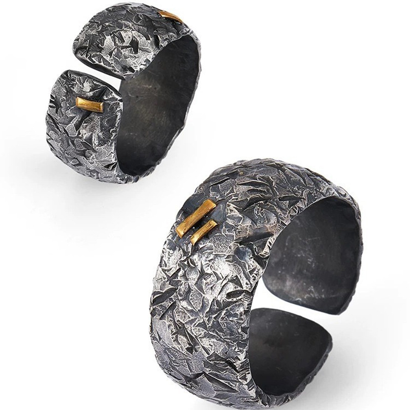 新品【伤痕】戒指男士个性复古小众设计手工中指戒 - xiao桐的纯银银饰铺
