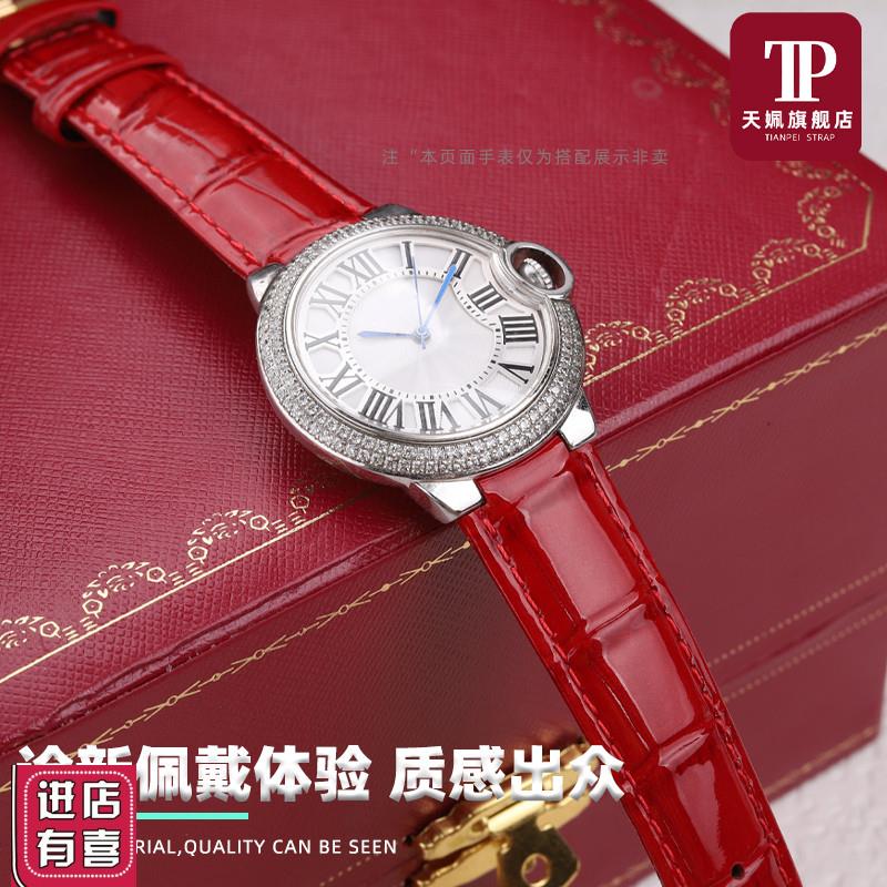 适配卡地亚男女款蓝n气球凸口柔软真皮手表带腕表替换亮光牛皮表 - 0维度品牌配件行