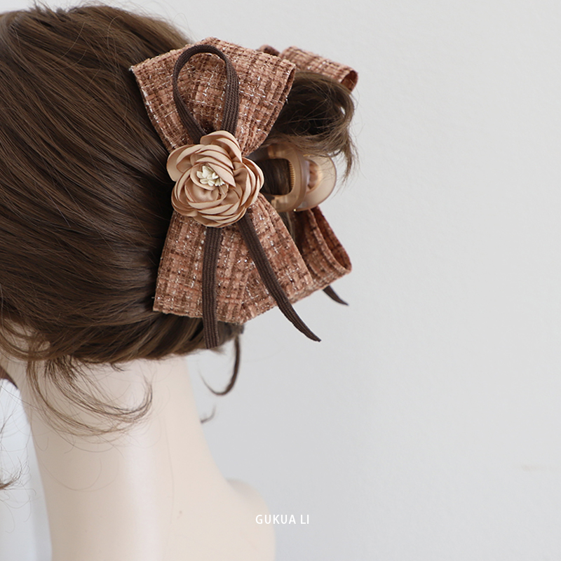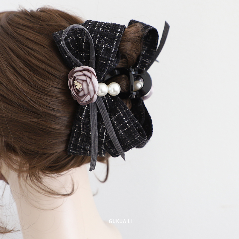 gukuali原创山茶花抓夹花朵后脑勺发夹发饰头饰女小香风鲨鱼夹大 - GUKUA LI 小姐设计品牌