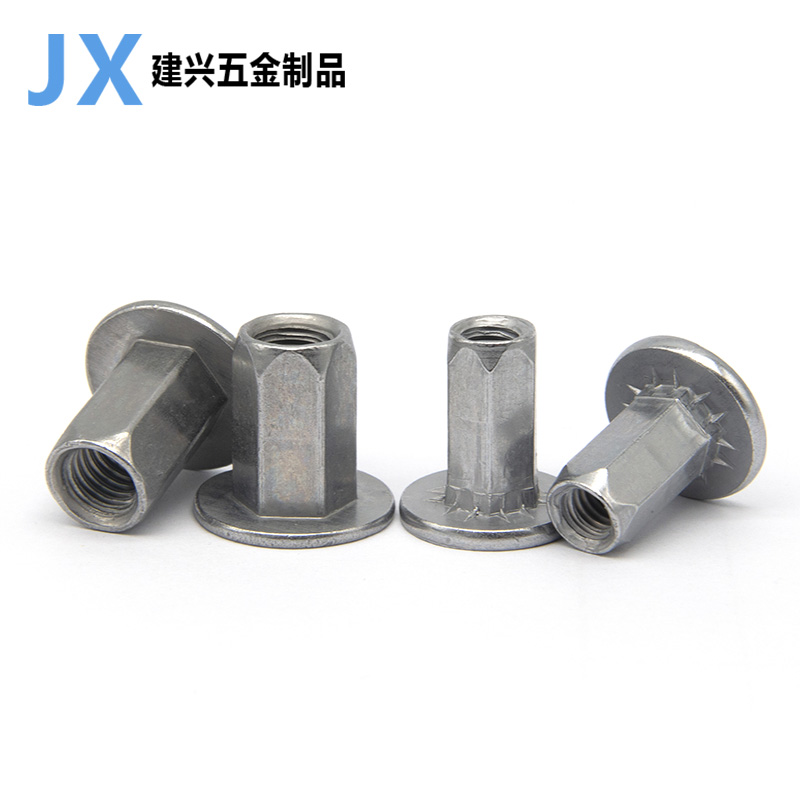 汽车铆螺母大平头全六角大帽碳钢锌镍合金保险杠牌照拉铆螺母M6M8 - 建兴五金JX