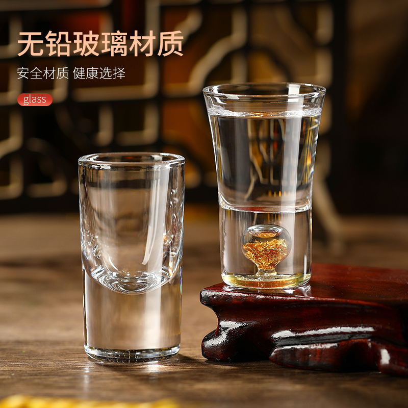 玻璃小酒杯家用白酒杯金箔烈酒杯 一口杯KTV子弹杯厚底云吞杯酒盅 - HIGH吧酒吧用品