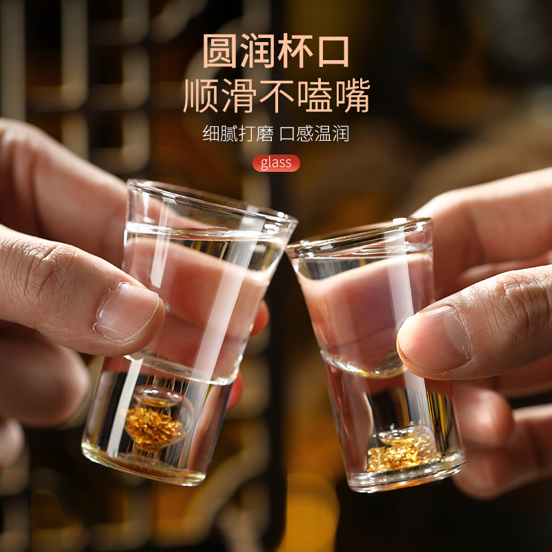 您的位置:他他商城  >   >  玻璃小酒杯家用白酒杯金箔烈酒杯 一口杯KTV子弹杯厚底云吞杯酒盅