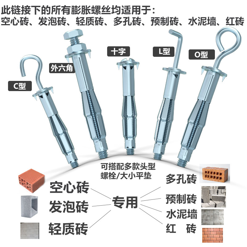 外六角空心砖膨胀螺丝重型膨胀螺丝六角中空壁虎膨胀栓加气块膨胀 - 丝固旗舰店