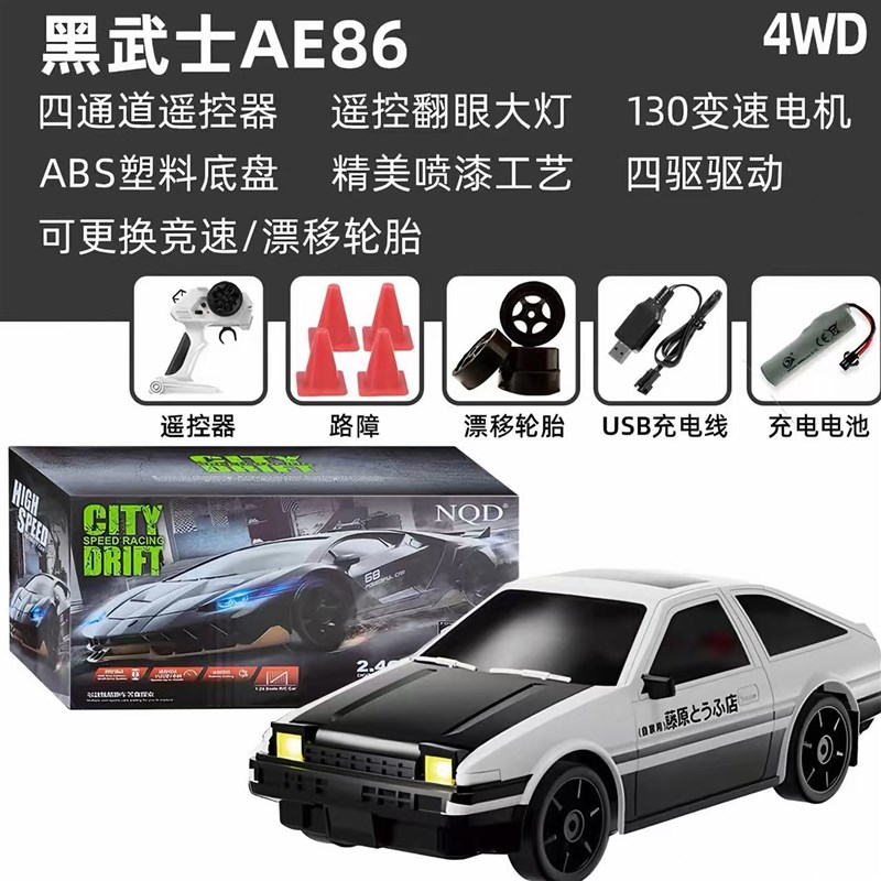 头文字DbAE86遥控车1:24漂移黑盖翻灯四驱充电男孩礼物拓海款 - tb5452168629