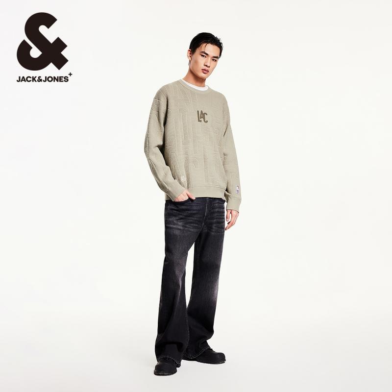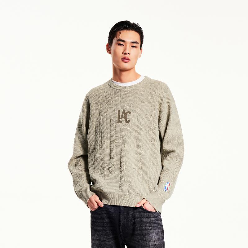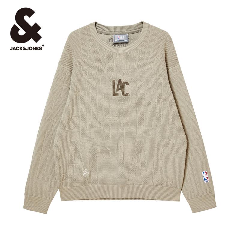 杰克琼斯NBA联名款春季洛杉矶队刺绣提花宽松毛衣毛针织衫男装
