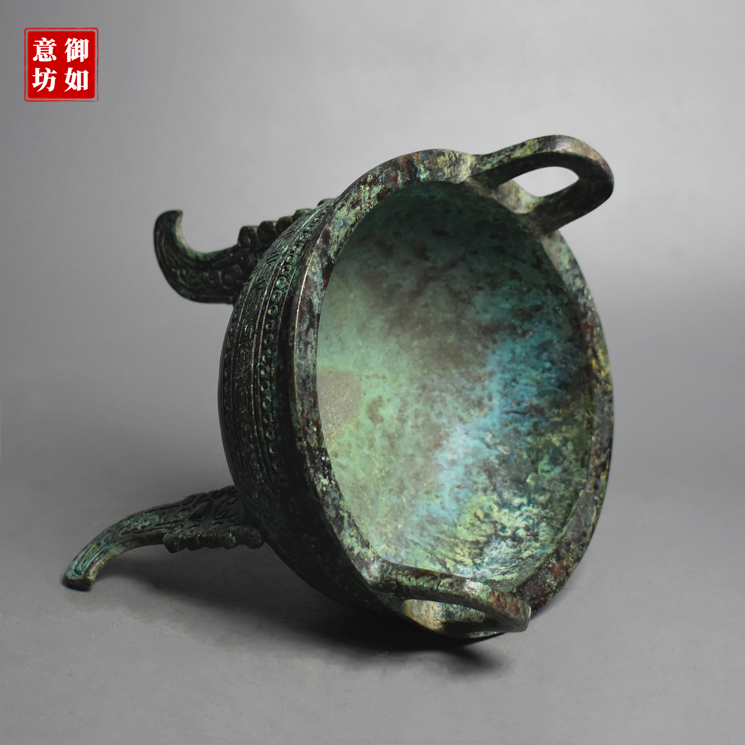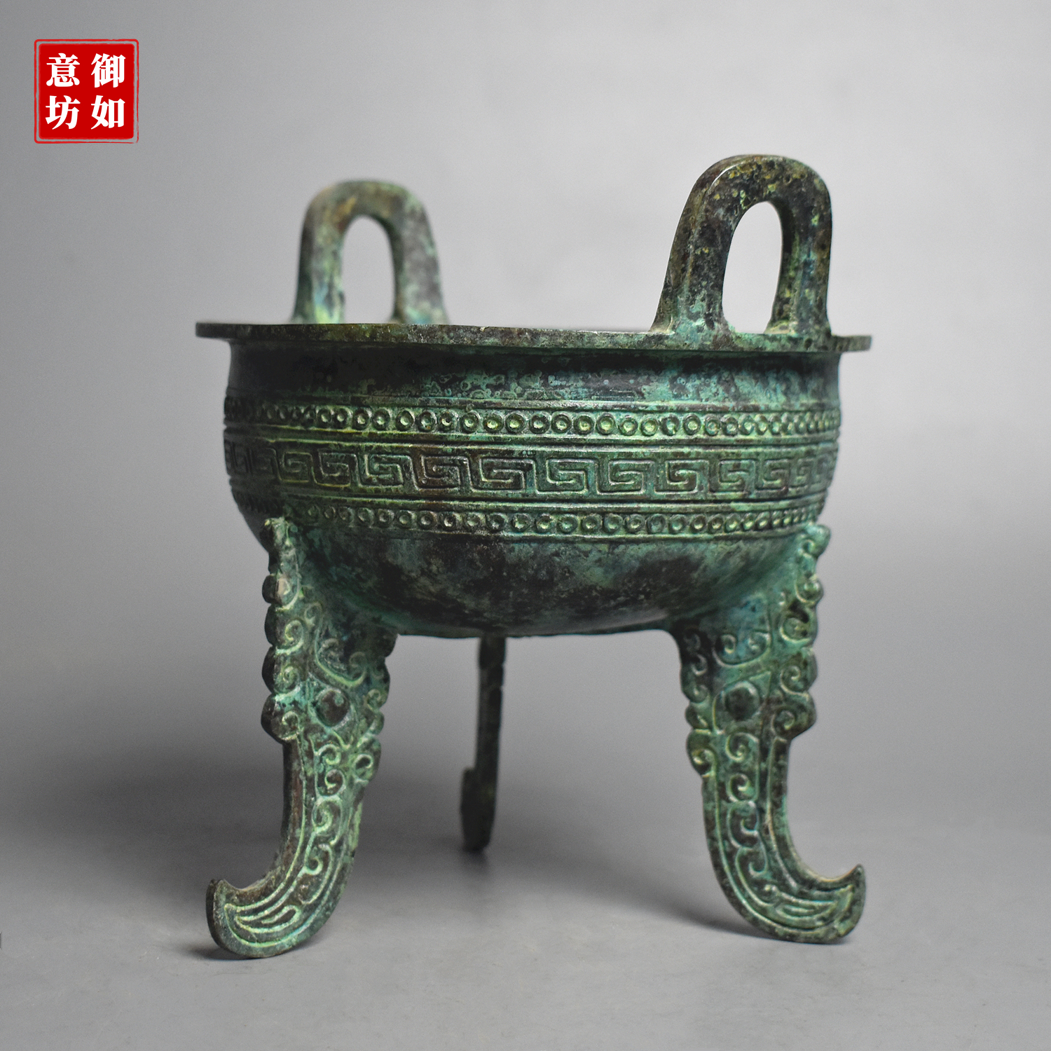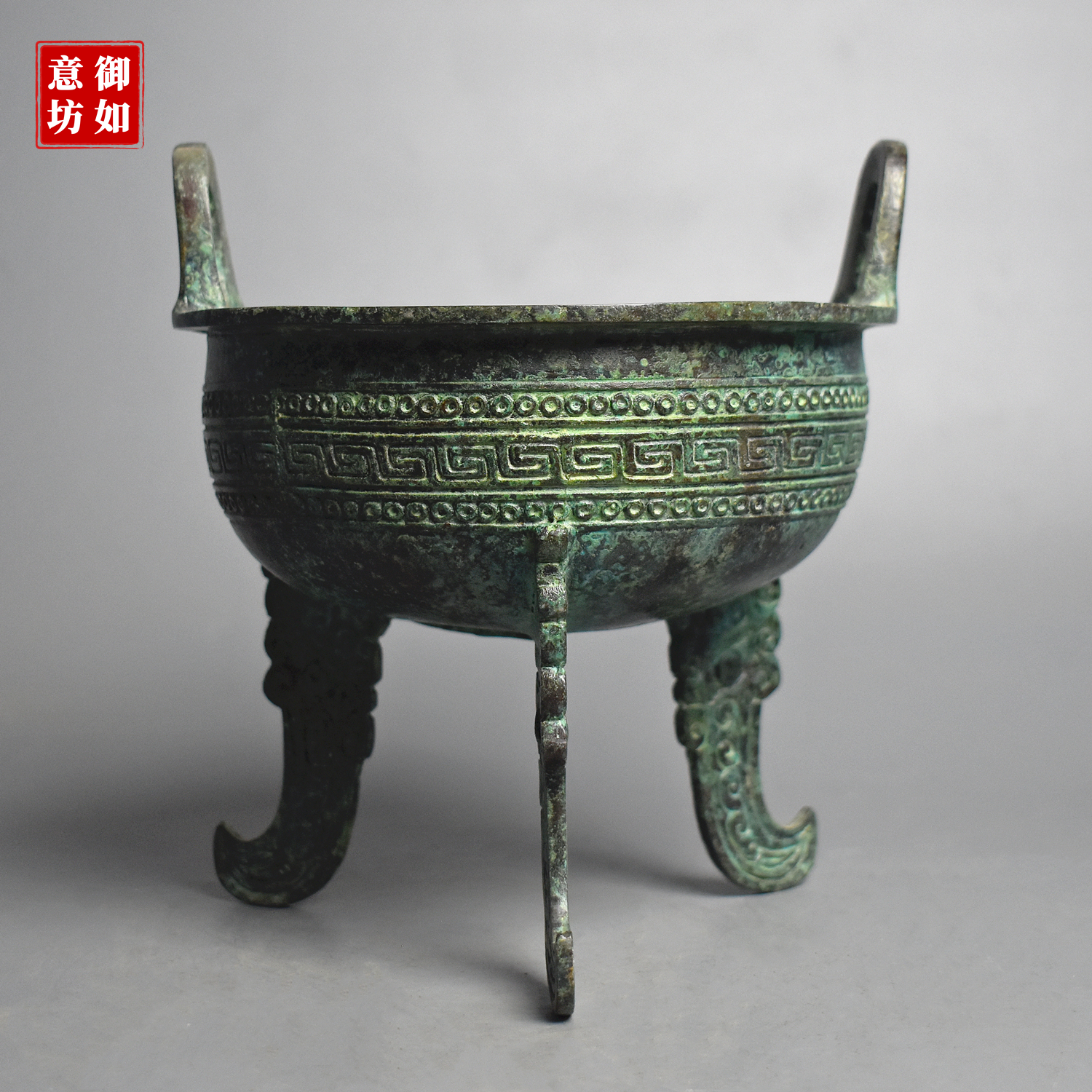 仿古青铜器商代三足圆鼎扁足鼎古代食器煮锅复古装饰工艺品收藏 - 御如意青铜坊