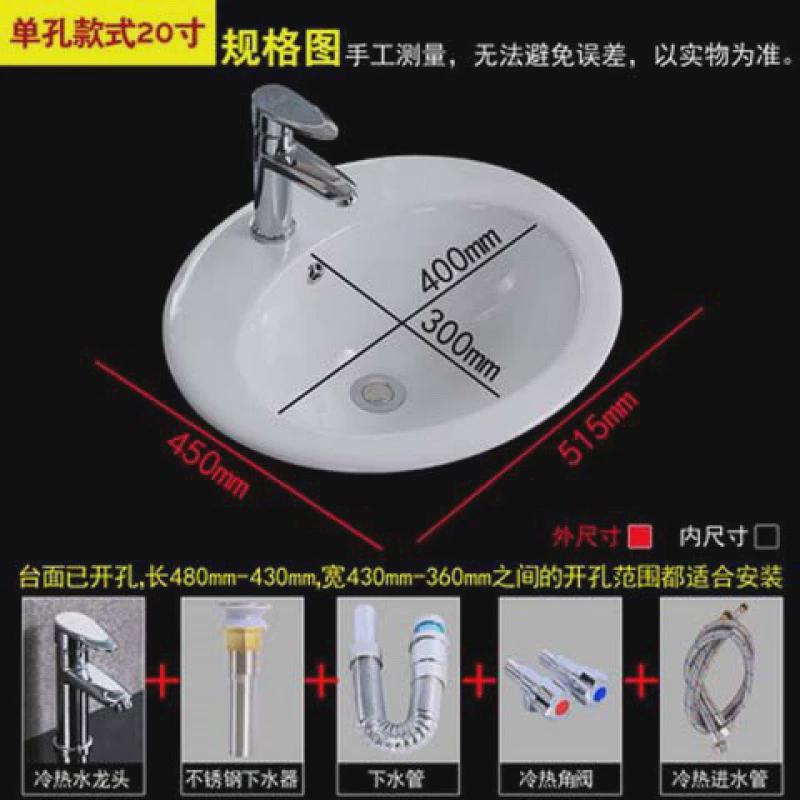 vgv台中盆嵌入式半陶瓷洗脸洗手面盘正圆椭圆方形大小号台下换台 - 莫待有花空折枝
