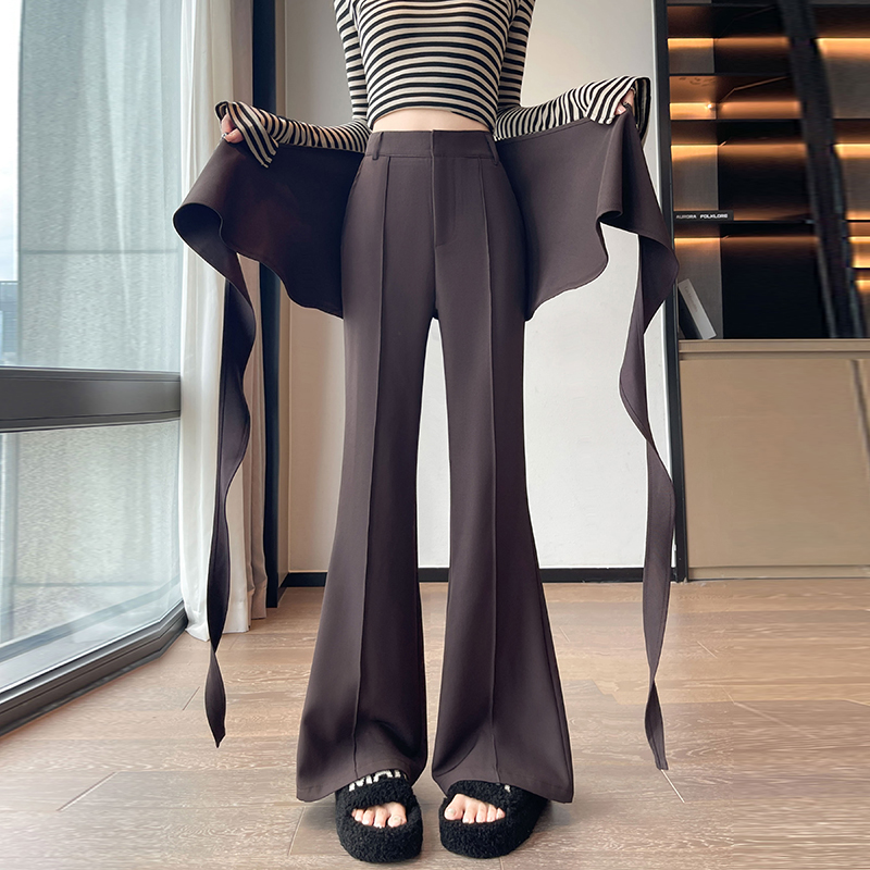 实拍荷叶边围裙式西装微喇裤女秋季高腰显瘦休闲喇叭裤裙裤海带裤 - 梦梵潮奢服饰