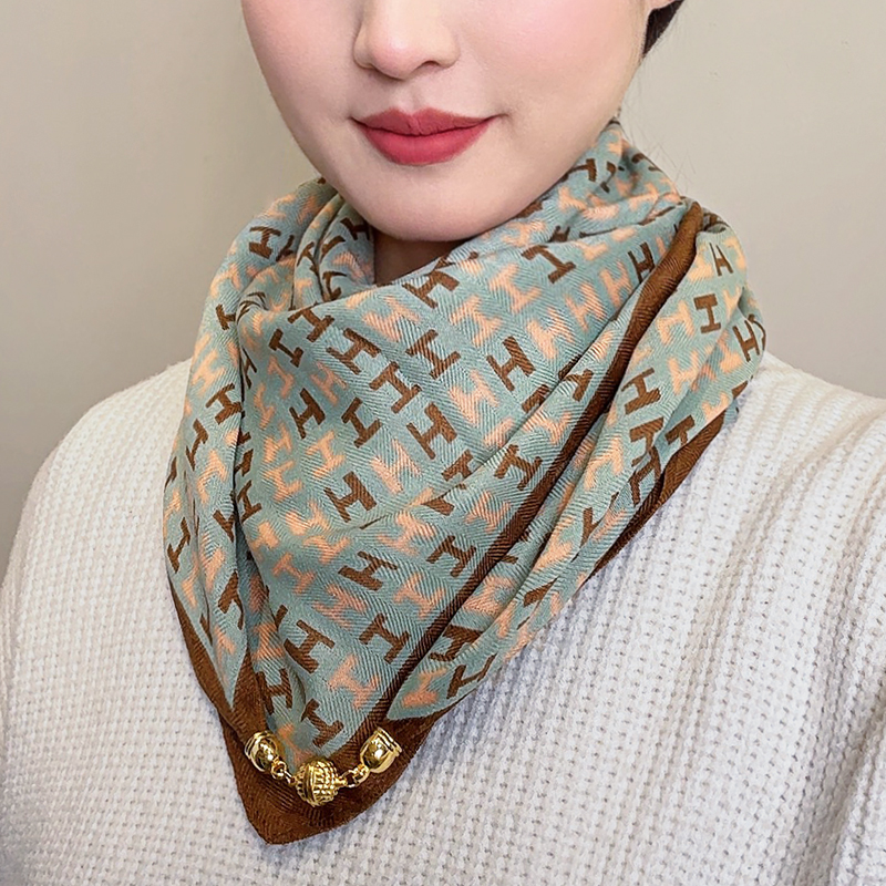秋冬保暖围脖围巾女2025新款高级感三角巾时尚磁吸扣小方巾丝巾女 - 望亲满意家居百货