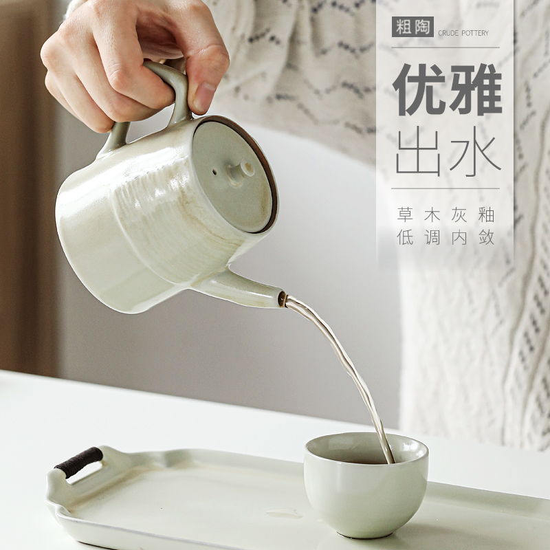 遇素创意中式功夫茶壶单壶 草木灰球形过滤泡茶壶 陶瓷茶具泡茶器 - 遇素旗舰店