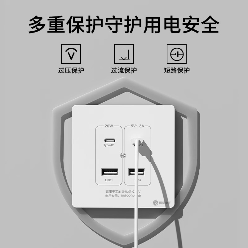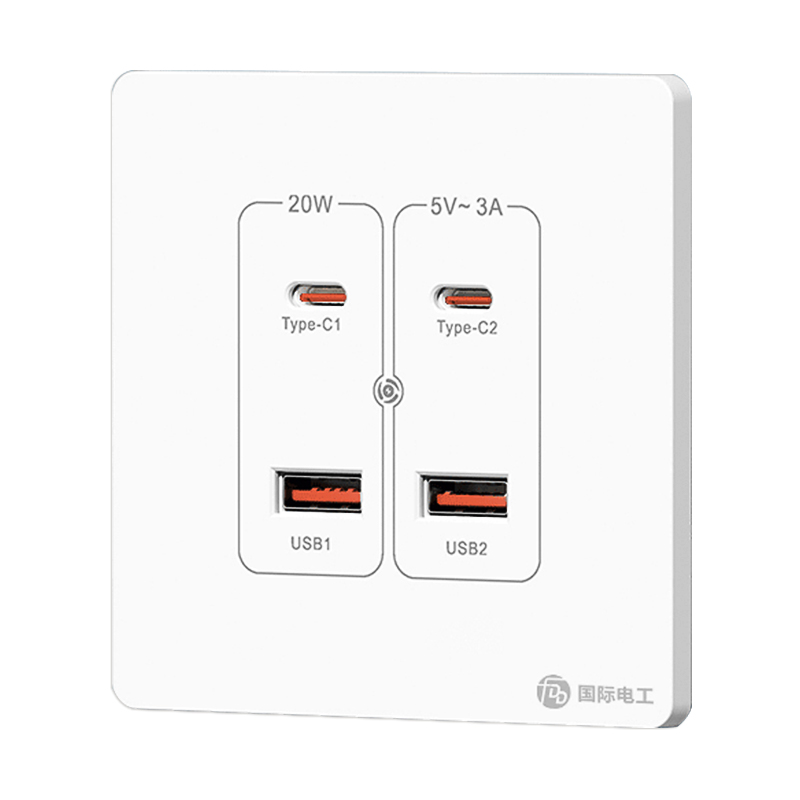 国际电工20W超级快充USB接口type-c插座白色二三四位暗装电源面板 - 国际电工品牌特卖店