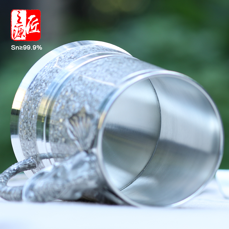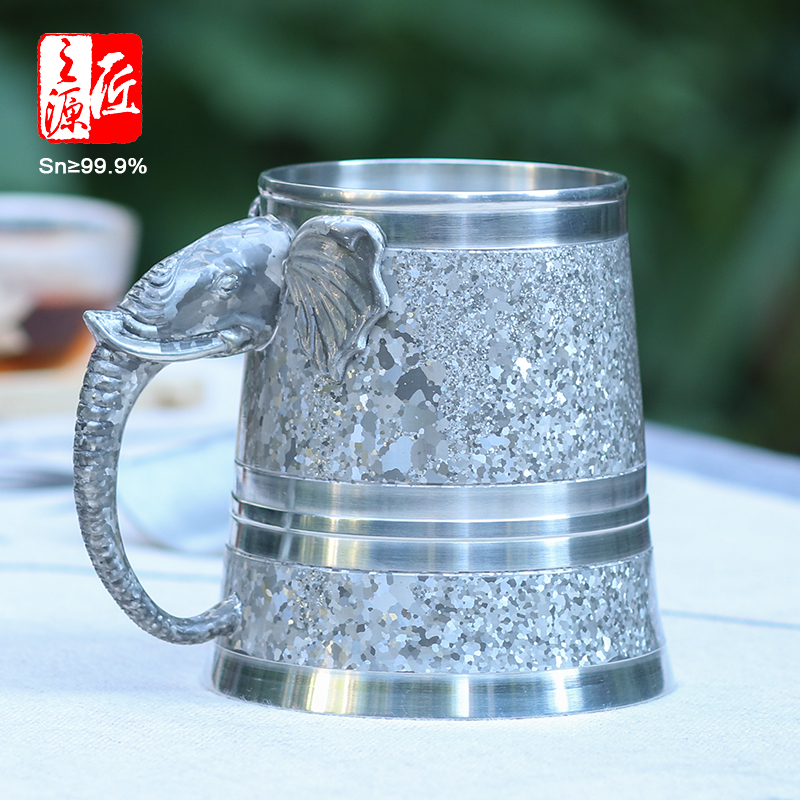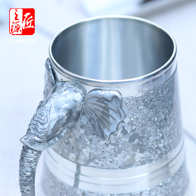 云南个旧锡都 999纯锡杯啤酒杯水杯茶杯-锡器象头杯子-吉象杯 - 匠之源旗舰店