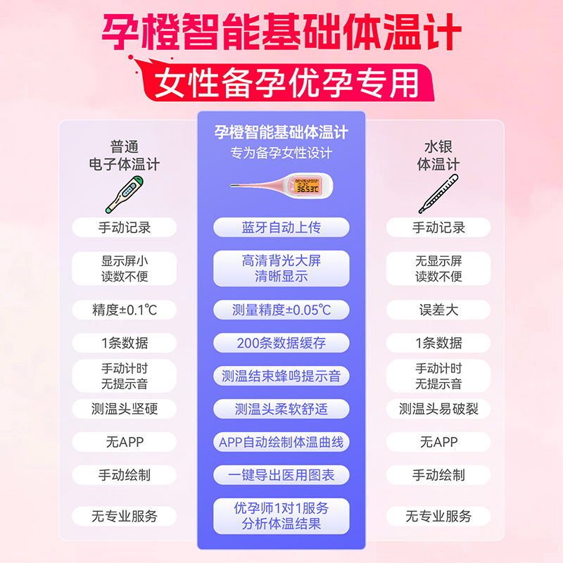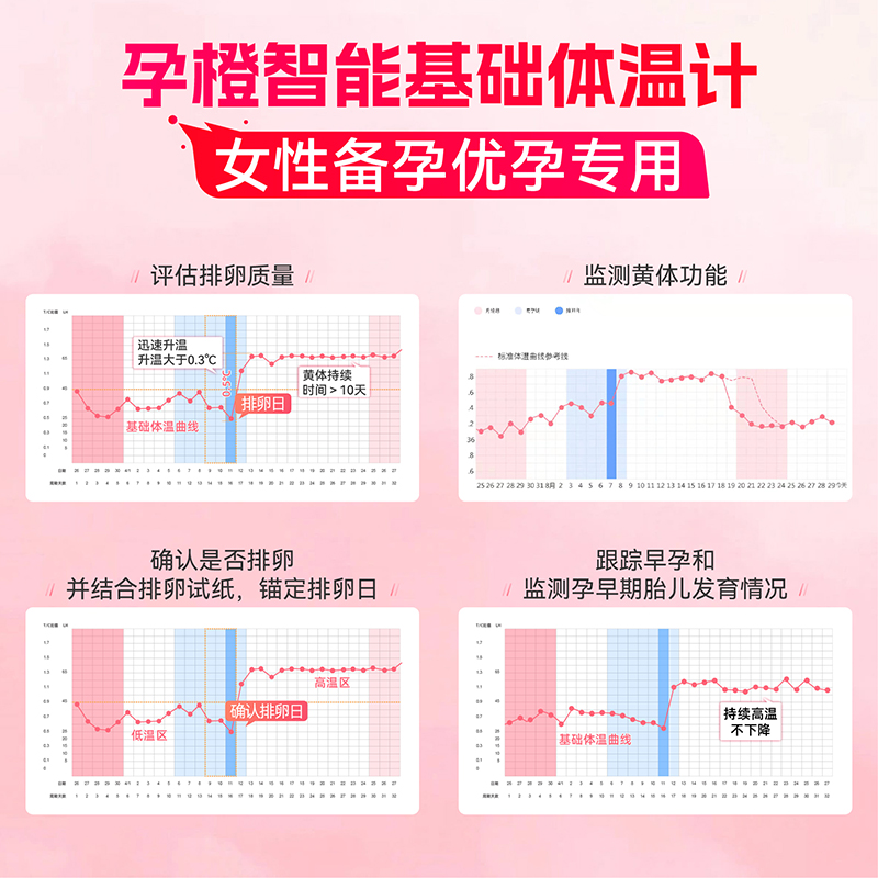 孕橙智能体温计备孕排卵期体温计医用级基础电子体温计舌下家用酮 - 孕橙旗舰店