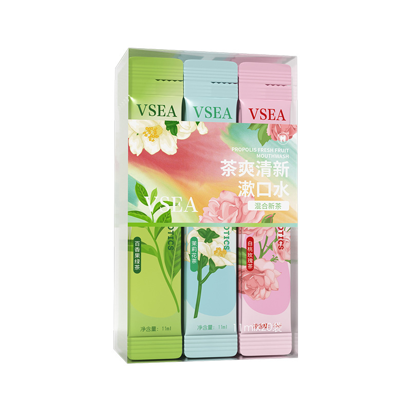 您的位置:他他商城  >  居家  >  白桃玫瑰茶香漱口水清新口气口齿留香温和护齿一次性小包装便携式