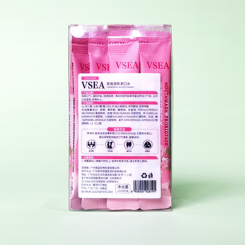 白桃玫瑰茶香漱口水清新口气口齿留香温和护齿一次性小包装便携式