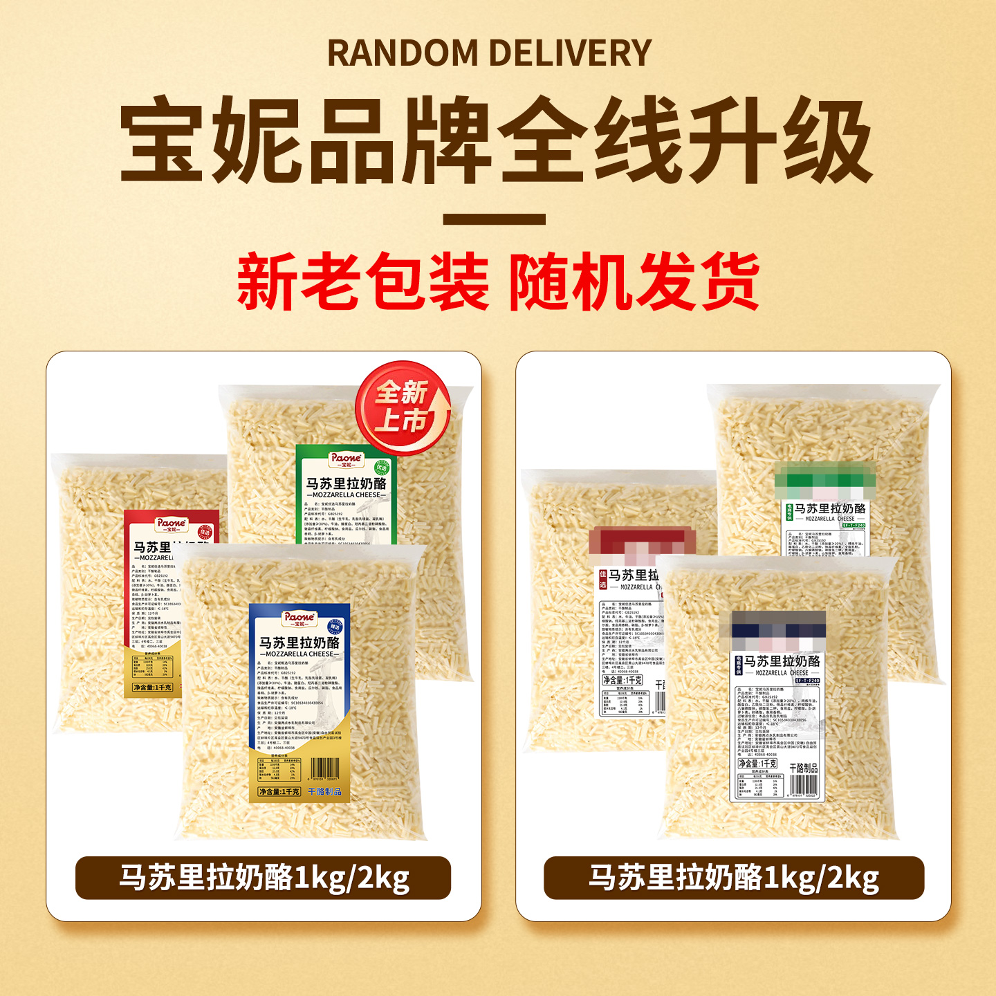 马苏里拉芝士碎2kg拉丝披萨奶酪焗饭西餐商用家用大包装冷冻干酪 - 宝妮西餐烘焙官方企业店