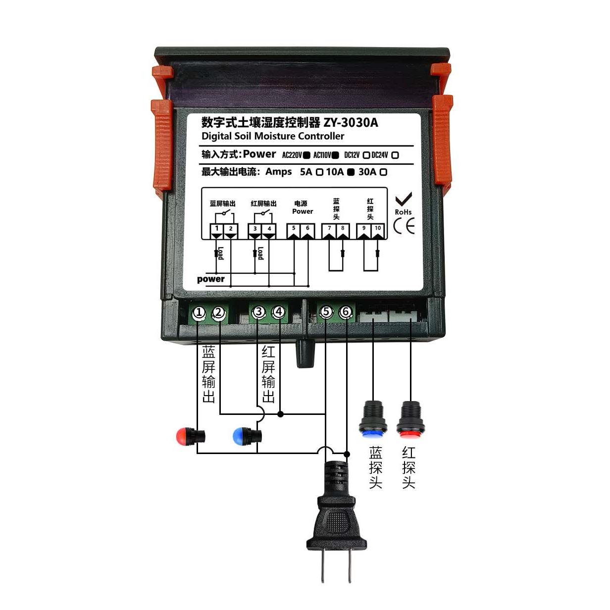 ZY-3030A高精度智能数字式土壤湿度控制器全自动加湿除湿控制器