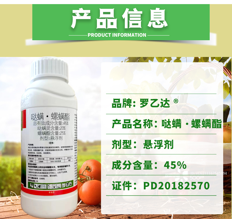 您的位置:他他商城  >   >  中科罗乙达 45%哒螨螺螨酯悬浮剂柑橘树红蜘蛛农药哒螨灵螺螨酯
