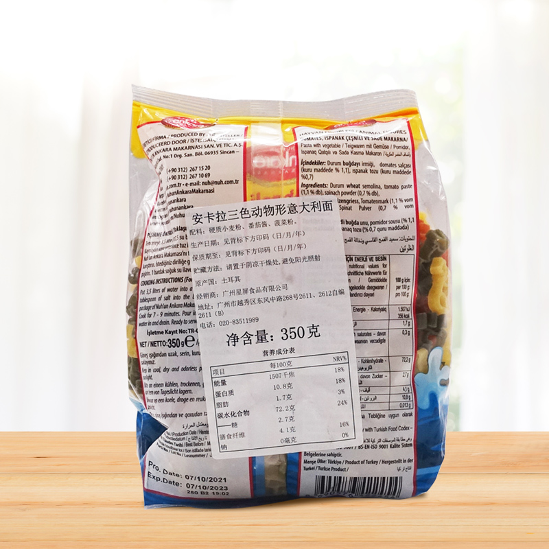 安卡拉三色动物形意大利面350g*2袋 儿童意面卡通形状家用速食面 - 金桥食品大亨