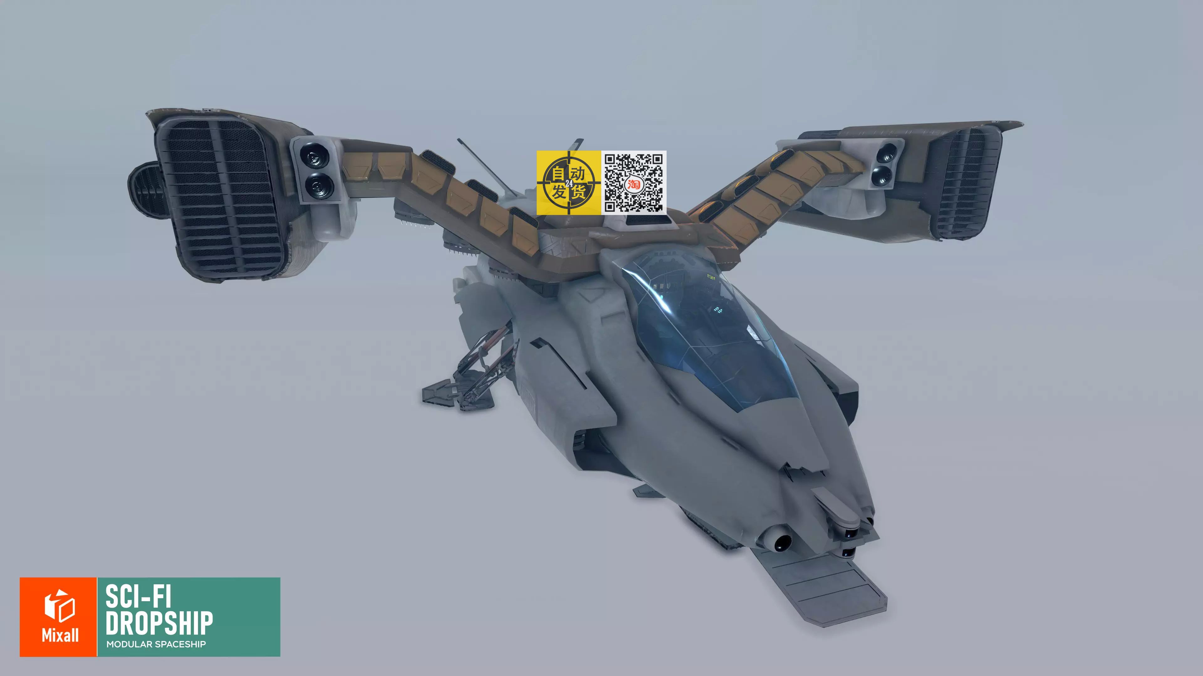 U3D模型 科幻宇宙飞船 Sci-fi dropship - modular spacesh 1.0 - 银狐资源工作室