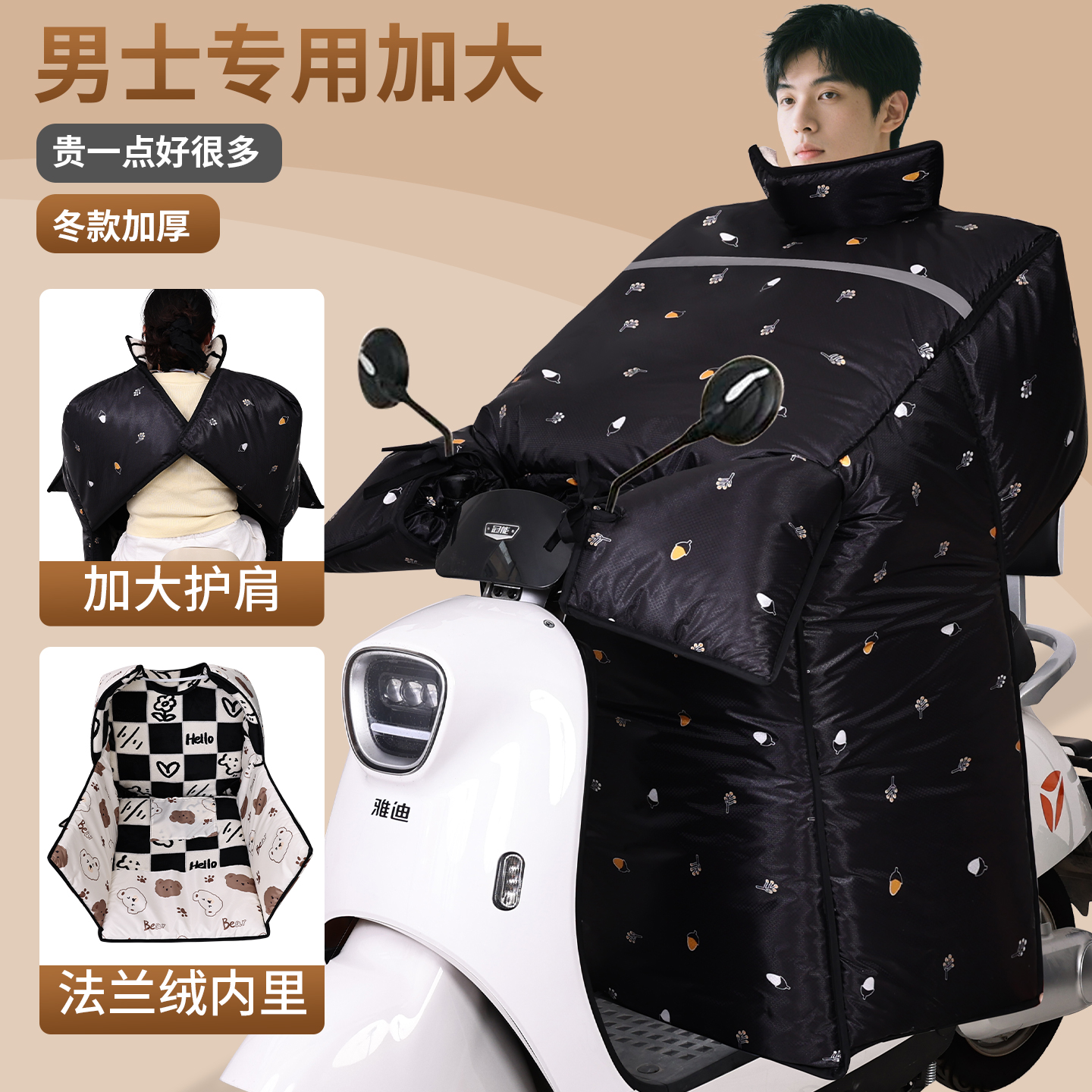 电动车挡风罩冬季挡风被加大加厚加绒防水护肩护腿男士大码电摩罩 - 良品几何旗舰店