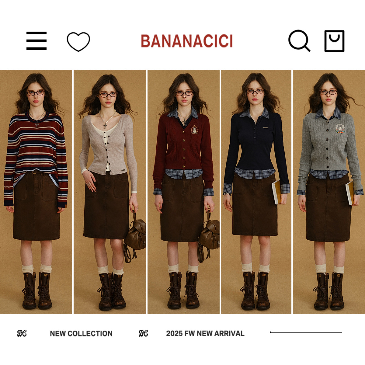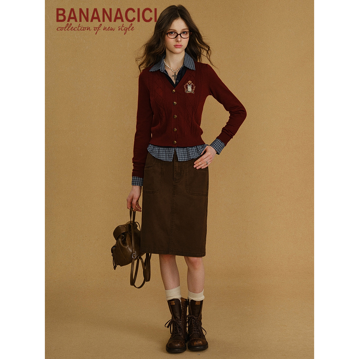 您的位置:他他商城  >   >  BANANA CICI2025年秋季新款纯棉咖啡色透气挺括直筒中长牛仔半裙