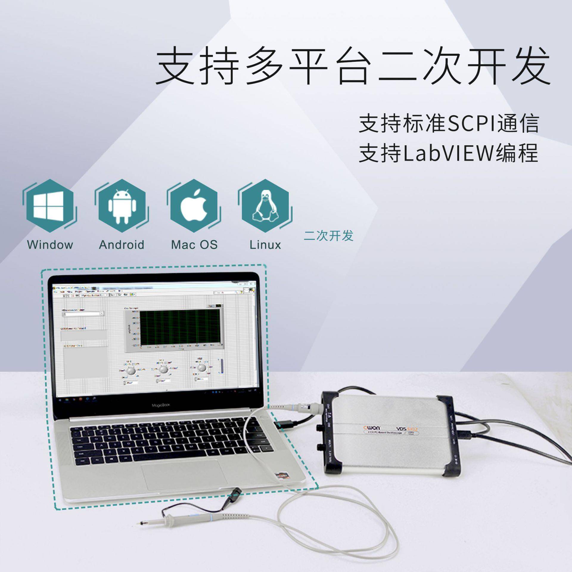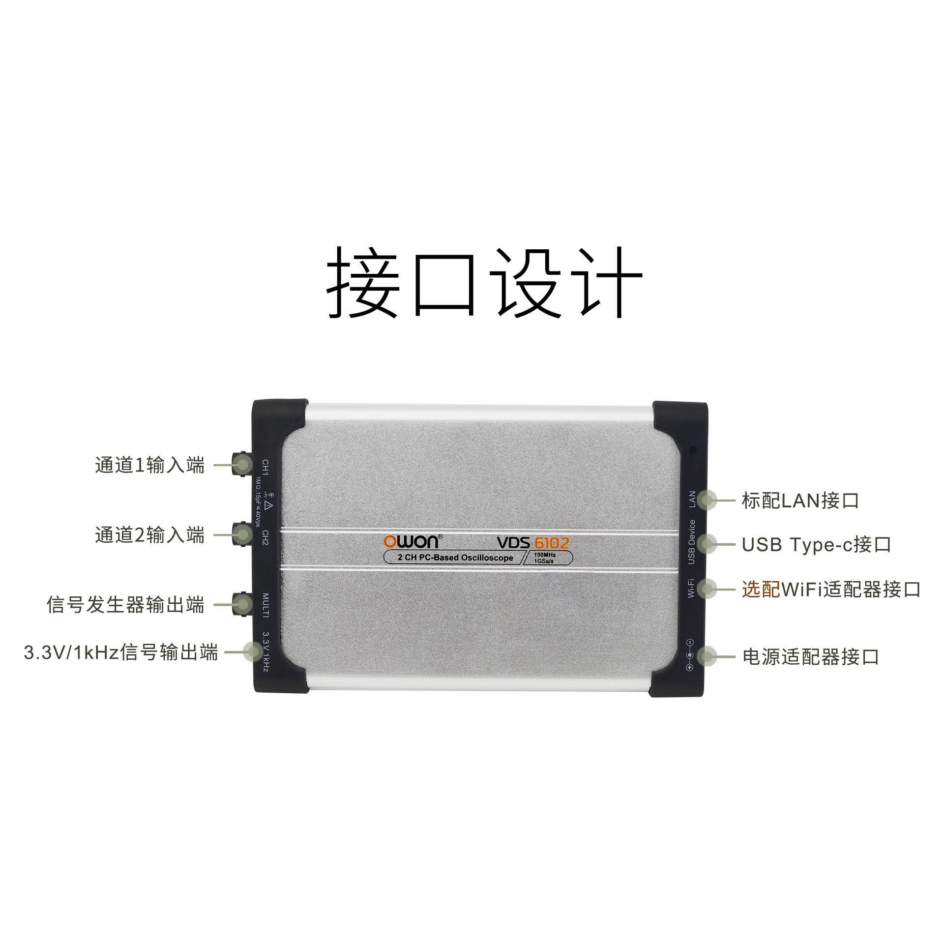 OWON虚拟PC数字示波器VDS6102双通道100M便捷标配信号源二次开发