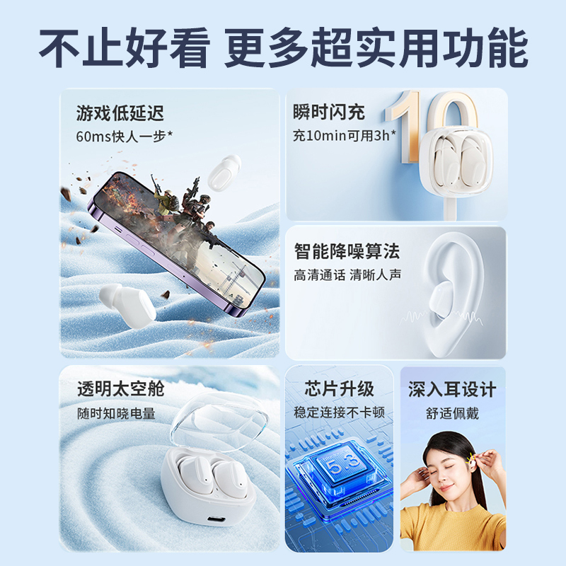 马拉松无线蓝牙耳机2025新款入耳式降噪睡眠长续航适用苹果华为