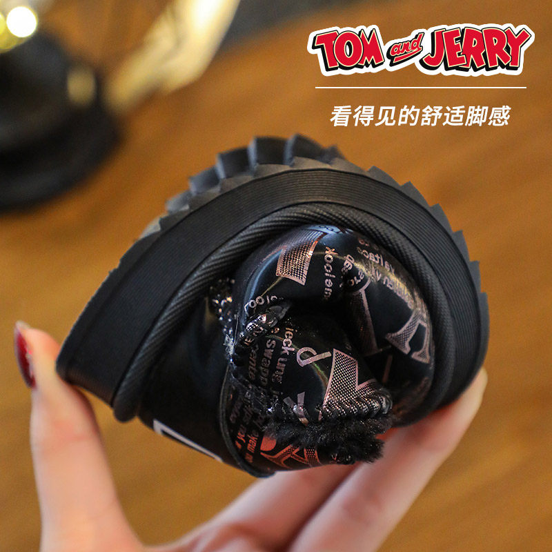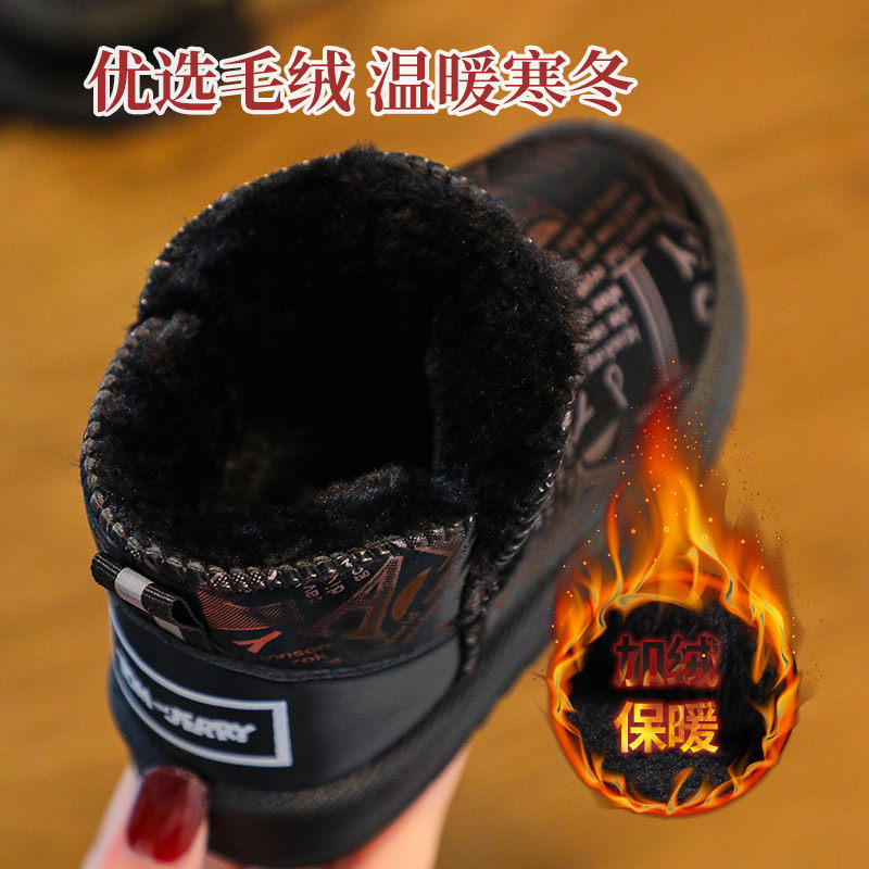 儿童雪地靴男童猫和老鼠秋冬季加绒加厚宝宝外穿软底短筒棉靴女童 - 吉祥童鞋