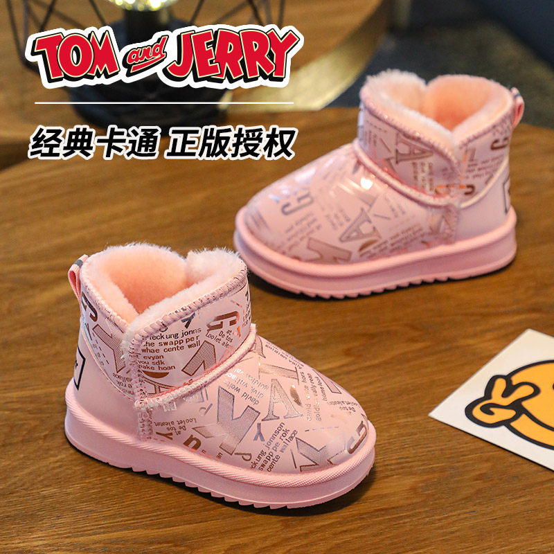 儿童雪地靴男童猫和老鼠秋冬季加绒加厚宝宝外穿软底短筒棉靴女童