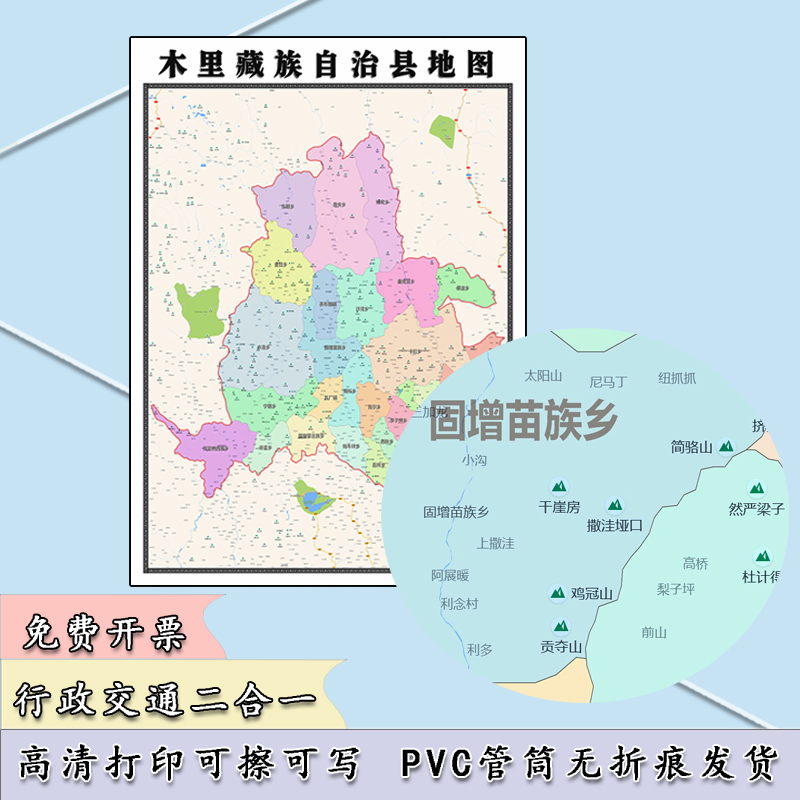 木里藏族自治县地图1.1米四川省凉山州贴图行政交通划分新款定制 - 源本穑地图服务中心