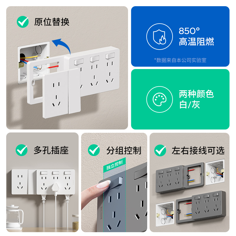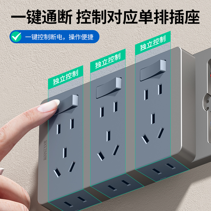 86型扩展式插座带开关厨房墙面多孔无线插排转换器多功能拓展插座 - 欧奔国际电工旗舰店