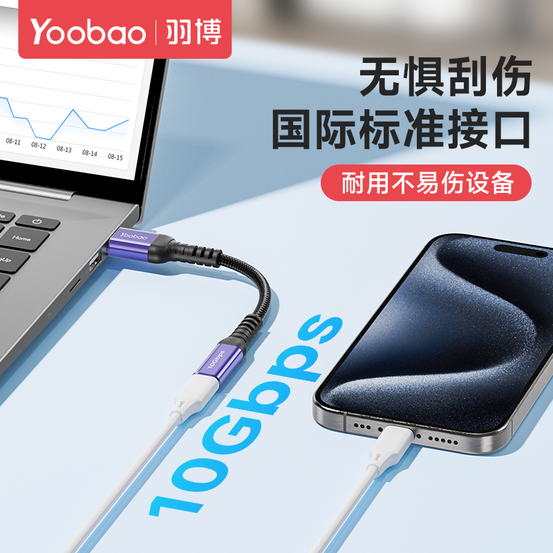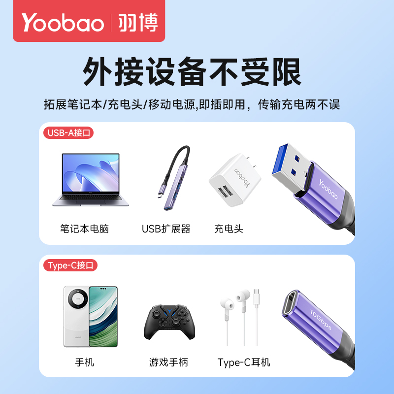 羽博USB3.0公转Type-C母转接头数据线延长器高速传输笔记本电脑连接移动硬盘u盘数字解码耳机车载carplay充电 - yoobao旗舰店